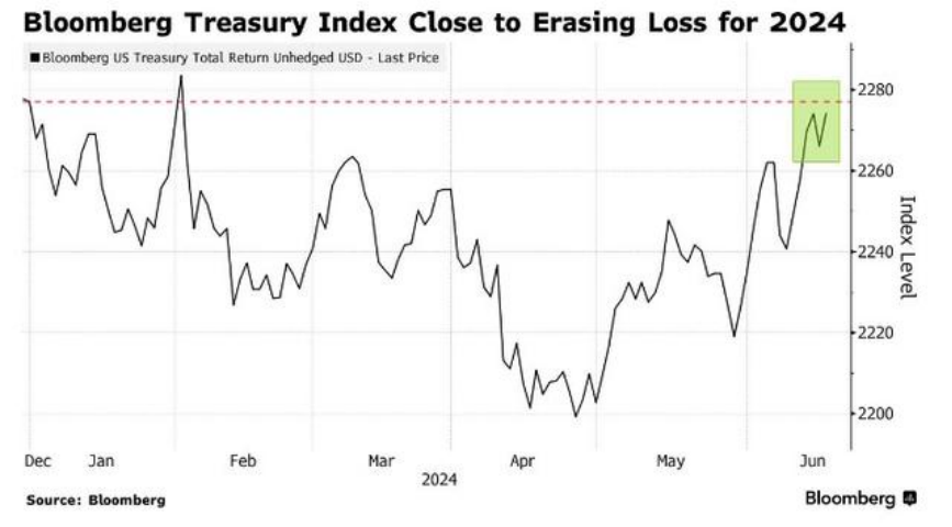 限制当今,Bloomberg跟踪好意思债酬报率的主义本年以来仅下降0.1%,而本年4月的跌幅高达3.4%。好意思债本轮反弹的中枢是,投资者押注好意思国物价降温将促使好意思联储比官员们所暗意的更早、更大幅度地降息,从而有用限制了好意思国国债收益率的高涨幅度。