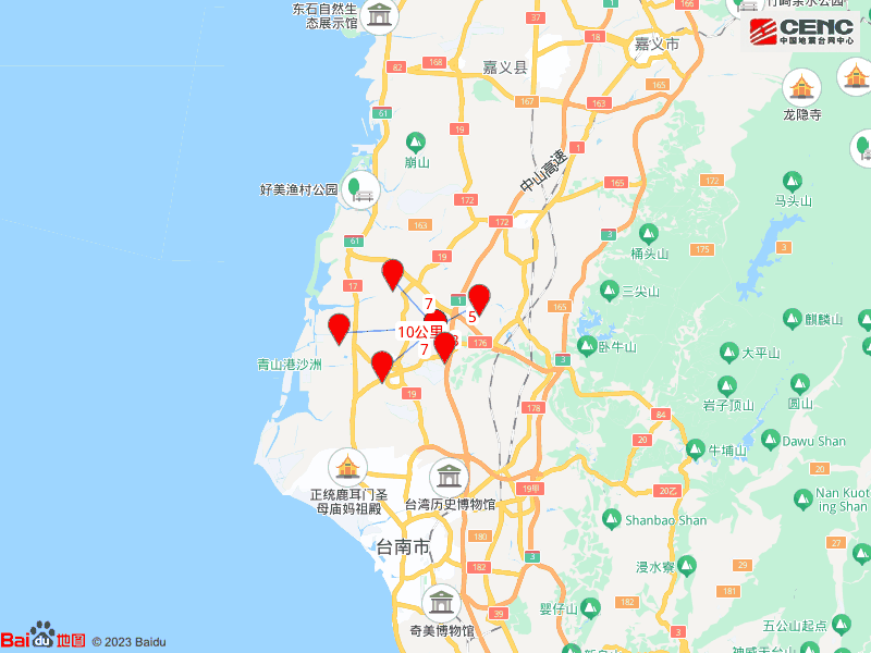 左近县城:震中距麻豆区3公里、距下营区5公里、距佳里区7公里、距学甲区7公里、距将军区10公里,距台南市25公里,距台北市244公里。
