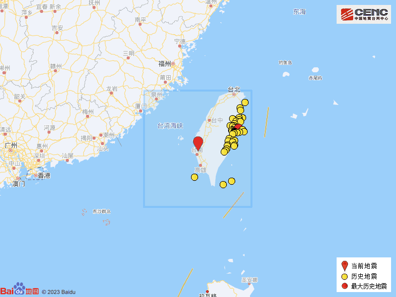 据中国地震台网崇敬测定,11月22日20时40分在台湾台南市发生4.7级地震,震源深度15公里,震中位于北纬23.21度,东经120.23度。
